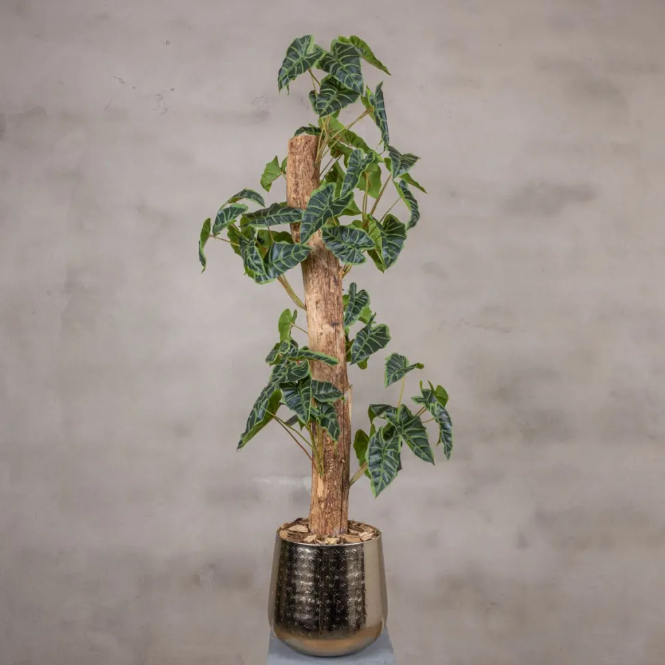 Natürlicher Stamm mit Kunst Alocasieblatt mit einem Innentopf von 15 x 19 cm. Erhältlich in verschiedenen farbigen Töpfen, scrollen Sie nach unten, um Ihre Wahl zu treffen.