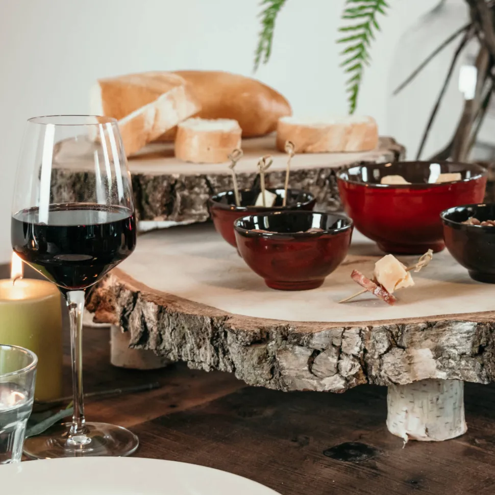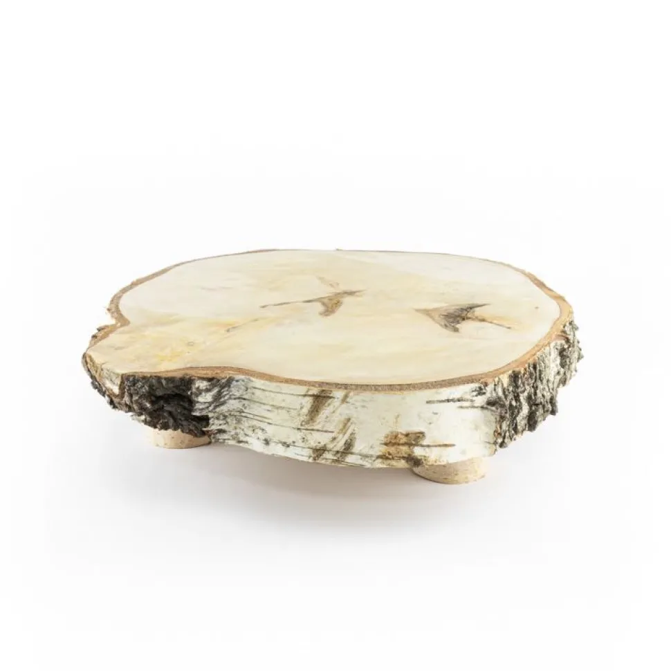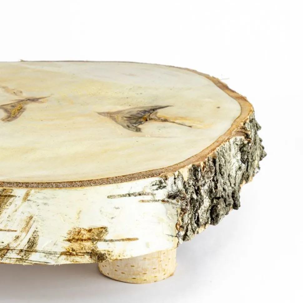 Baumscheibentischchen aus Birke, für Snacks oder Deko-Artikel. Höhe 10 cm, Durchmesser ± 25-30 cm. Auch toll in Kombination mit unseren Baumscheibentischchen in anderen Höhen.