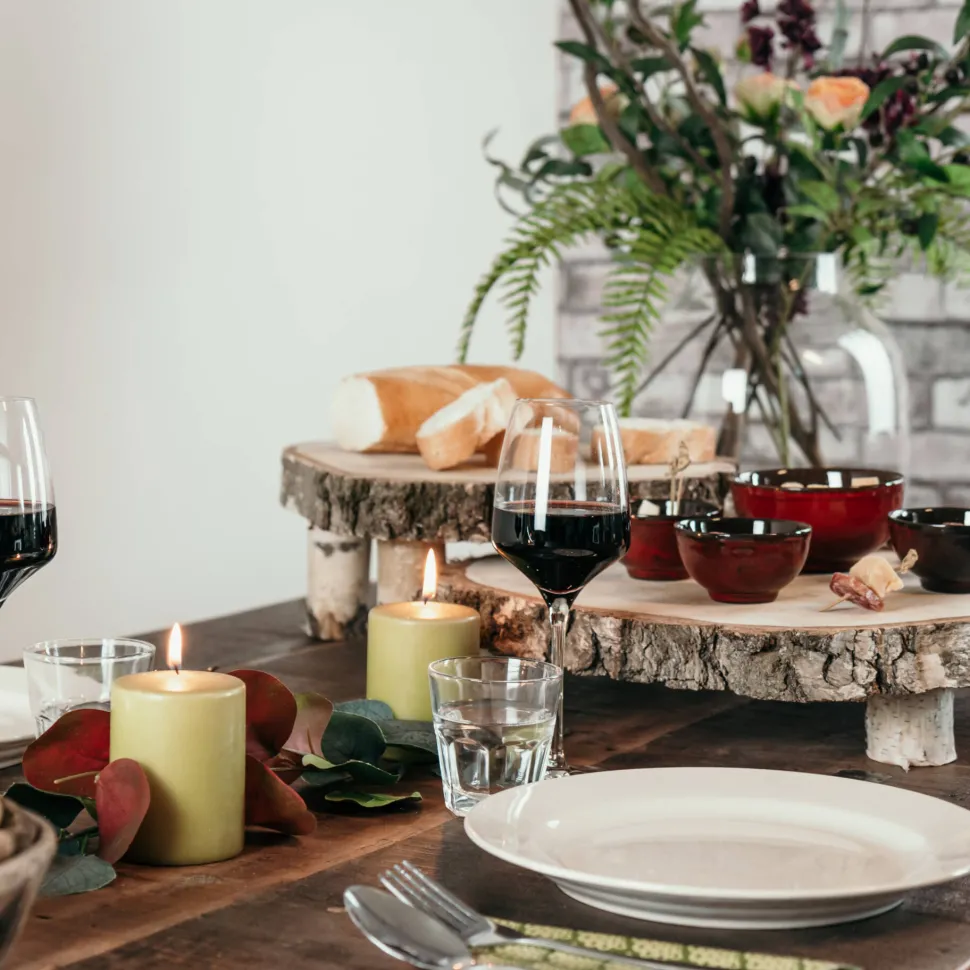 Kleiner, uriger Baumscheibentisch aus Birkenholz. Originelles Tischchen für Kerzen und andere Deko-Artikel oder für Fingerfood sowie Knabberzeug beim Spieleabend oder einem gemütlichen Klönschnack. Durch die abgebildete Kombination von Baumscheibentischchen in verschiedenen Höhen erzielen Sie einen schönen Effekt wie bei einer Etagere.