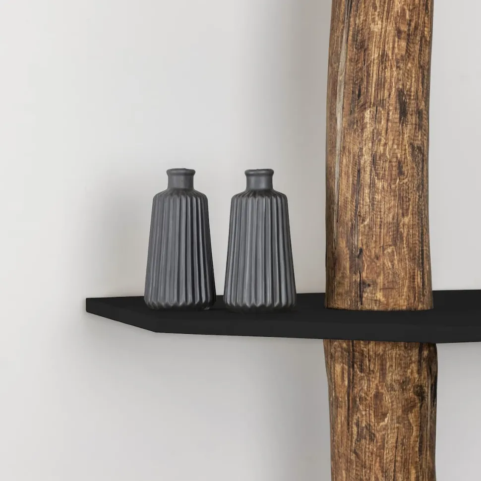Gibt es eine freie Ecke in einem Ihrer Zimmer und sind Sie auf der Suche nach etwas Besonderem? Dann ist dieses Baumstamm-Eckregal genau das Richtige für Sie. Es eignet sich perfekt, um Ihre Lieblings-Accessoires zu präsentieren.