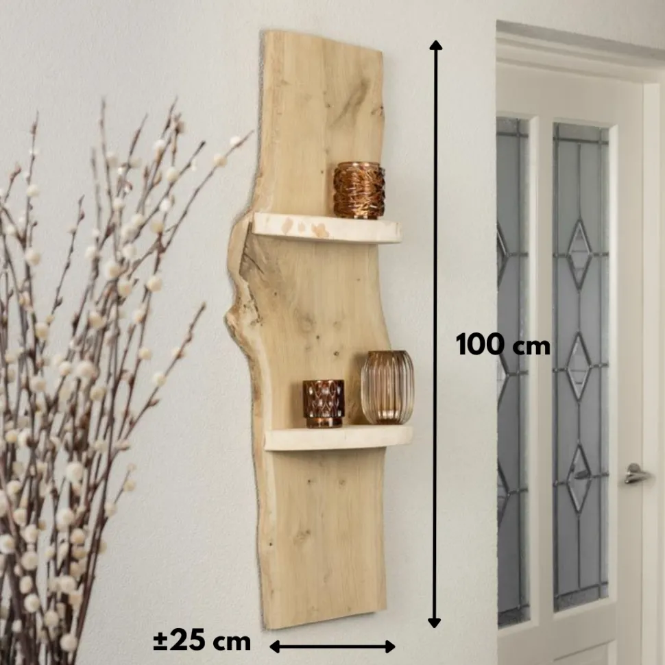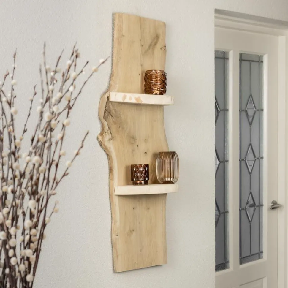 Ein Wandregal aus Naturholz ist nicht nur funktional, sondern auch eine schöne und stilvolle Ergänzung Ihrer Einrichtung. Das warme Aussehen und die einzigartige Maserung des Naturholzes schaffen in jedem Raum ein Gefühl von Gemütlichkeit und Authentizität. Sie können schöne Elemente wie Bilderrahmen, kleine Vasen oder gemütliche Teehalter darauf stellen, um Ihren eigenen Stil auszudrücken.