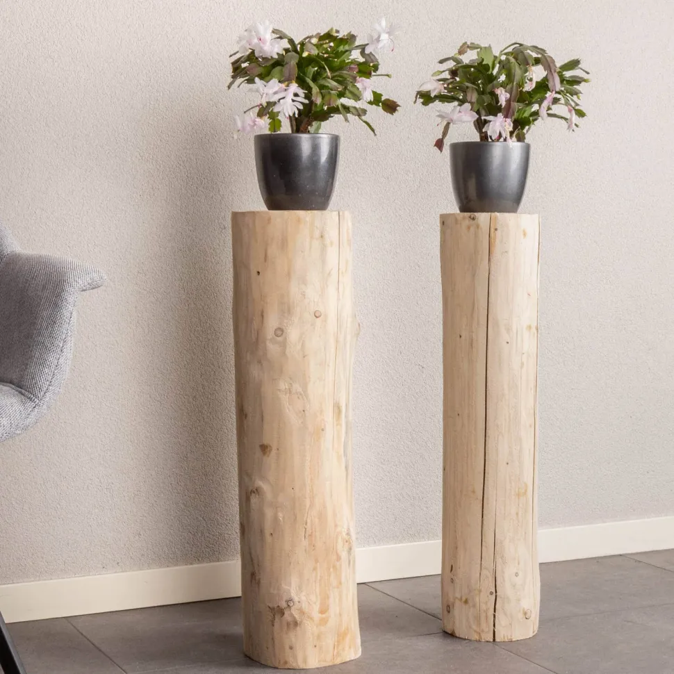 Diese Baumstammsäule ist eine tolle Pflanzensäule, die die Natur in Ihr Zuhause bringt und eine warme Atmosphäre schafft. Auch als Beistelltisch geeignet und wie wäre es mit einem schönen Hocker zum Herausziehen, wenn Sie mehr Gäste haben. Die Farbe kann leicht vom Foto abweichen, da es sich um ein Naturprodukt handelt. Da Holz ein lebendiges Material ist, kann es im Laufe der Zeit, je nach Temperatur und Feuchtigkeit der Umgebung, Risse bekommen. Durch langes Trocknen des Holzes versuchen wir, dies so weit wie möglich zu verhindern.