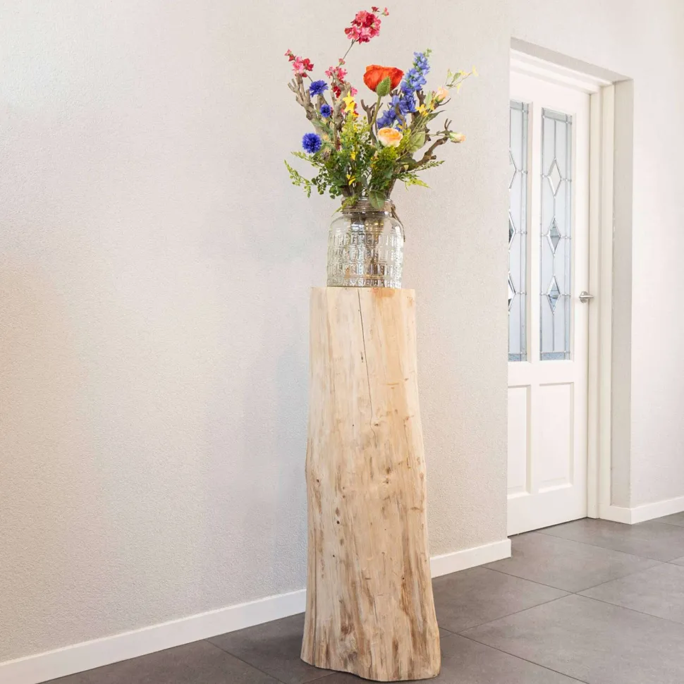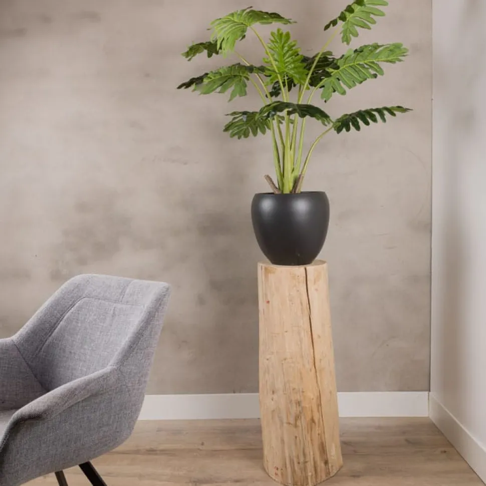 Diese Baumstammsäule ist eine tolle Pflanzensäule, die die Natur in Ihr Zuhause bringt und eine warme Atmosphäre schafft. Auch als Beistelltisch geeignet und wie wäre es mit einem schönen Hocker zum Herausziehen, wenn Sie mehr Gäste haben. Die Farbe kann leicht vom Foto abweichen, da es sich um ein Naturprodukt handelt. Da Holz ein lebendiges Material ist, kann es im Laufe der Zeit, je nach Temperatur und Feuchtigkeit der Umgebung, Risse bekommen. Durch langes Trocknen des Holzes versuchen wir, dies so weit wie möglich zu verhindern.