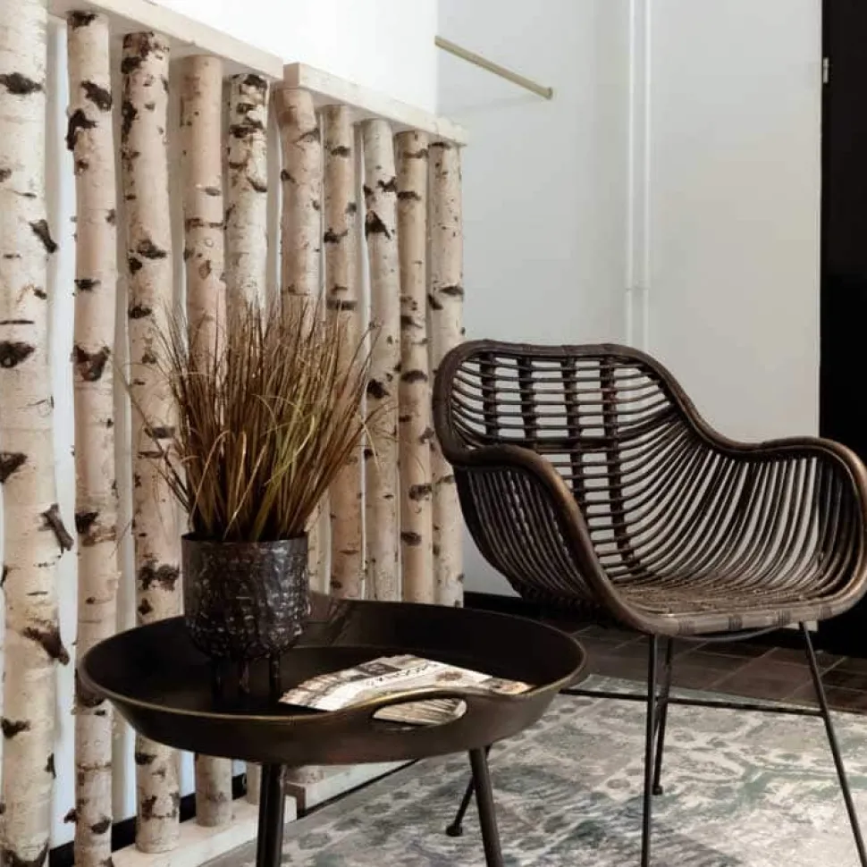 Raumteiler aus Birkenstämmen mit naturbelassenem Fuß. Ideal, um Ihren Raum auf spielerische Weise zu unterteilen. Höhe 165 cm, erhältlich in den Breiten 60, 90 oder 120 cm.