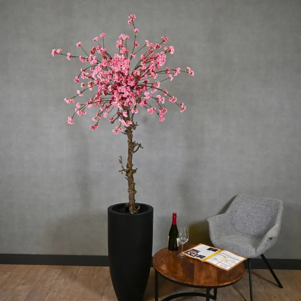 Dekorativer Blütenbaum mit natürlichem Stamm und leuchtend rosa Seidenblüten. Höhe 200 cm. Auch mit Topf erhältlich.