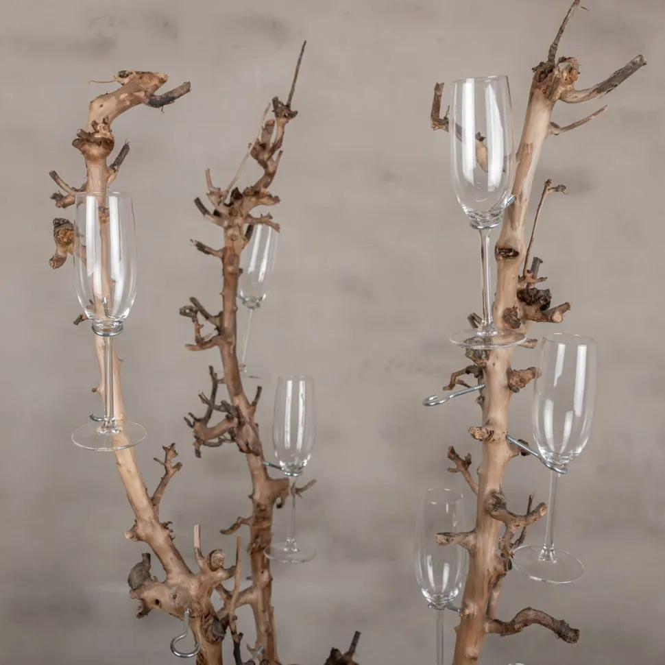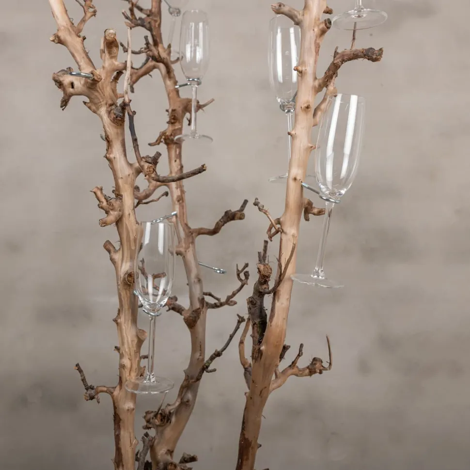 Champagnerbaum mit drei Birnenzweigen an einem stabilen Stamm. Mit 15 Haken, um Ihre Gläser mit Sekt zu präsentieren. Höhe 150 cm.