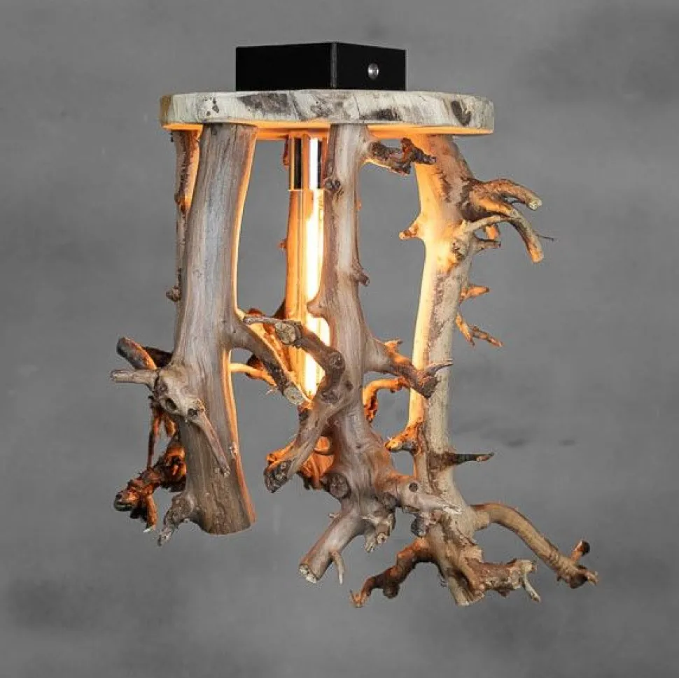 Deckenleuchte aus entrindeten Birnenzweigen