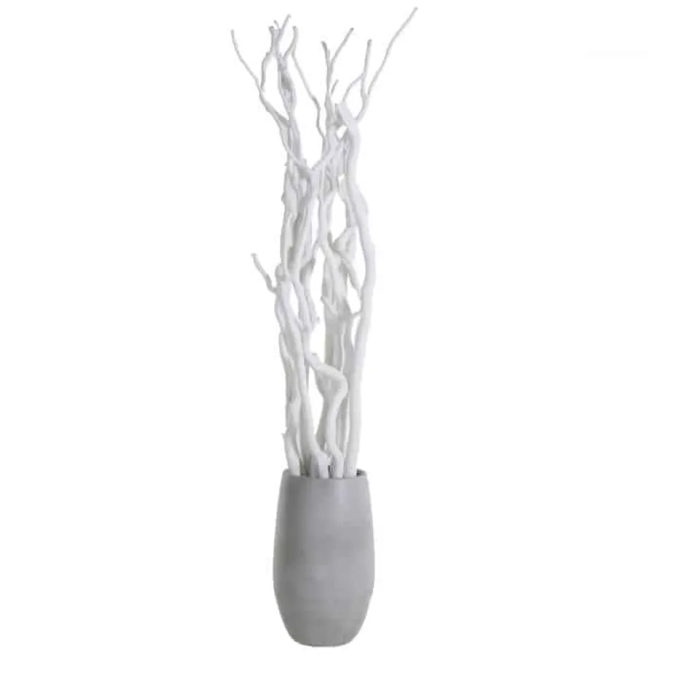Bündel weiß gefärbter Äste der Korkenzieherweide. Lieferung inkl. Bodenvase. Die Äste werden mit PU-Schaum in der Vase stabilisiert und mit einer dekorativen Schicht Baumrinde versehen.