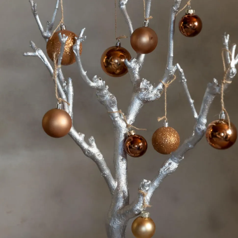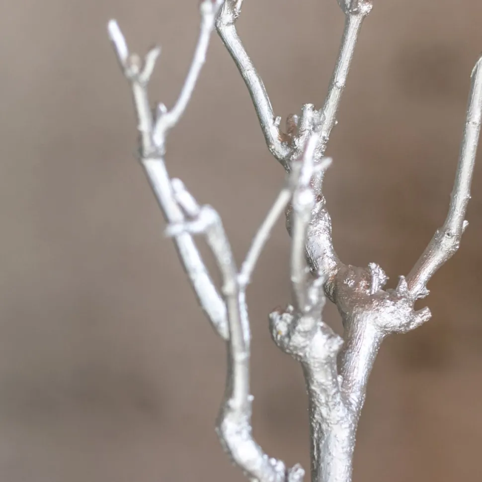 Dekorativer kleiner Baum aus silbern gefärbtem Fliederholz, an dem Sie schöne Accessoires aufhängen können. Beispielsweise Weihnachtsschmuck in der Vorweihnachtszeit, bemalte Ostereier zu Ostern – oder nutzen Sie ihn ganzjährig als Bilderbaum mit den Fotos Ihrer Lieben. Es gibt zahlreiche Möglichkeiten, wie Sie diesen kleinen Baum dekorieren können. Auch in einer naturbelassenen Ausführung sowie in Weiß, Schwarz und Gold erhältlich.