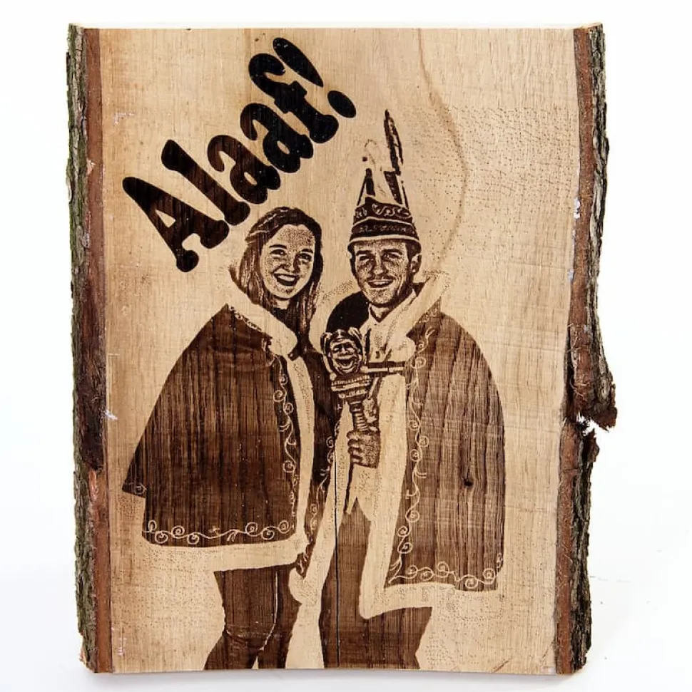 Personalisierte Eichenbohle Länge ± 25 cm mit eigenem Foto / Logo und Text.