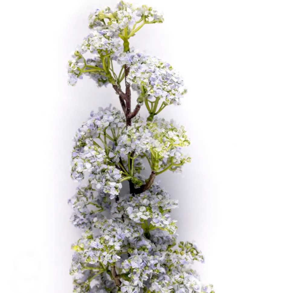 Künstlicher Zweig mit fliederfarbenen Blüten.