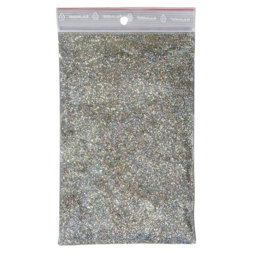Glitzer Gold-Silber Gemisch, feinkörnig. Beutelinhalt 200 ml. Glittergröße ± 0,06 mm.