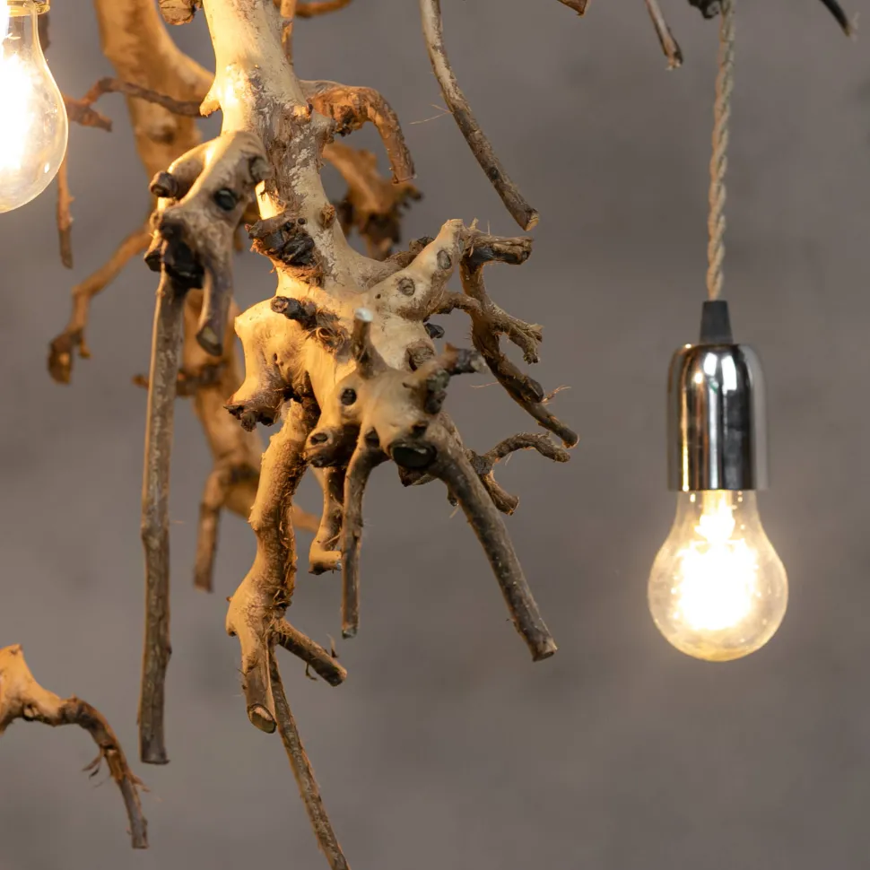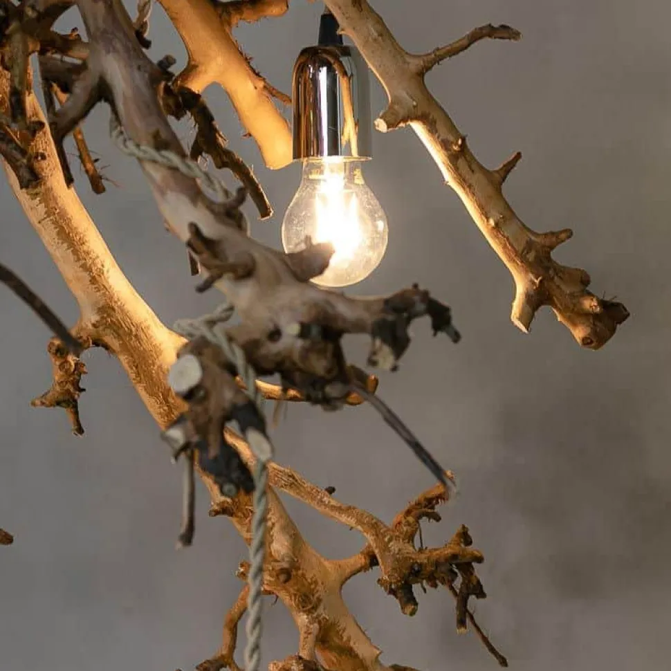 Originelle Astlampe aus entrindeten Birnenzweigen mit 5 Lampenfassungen.