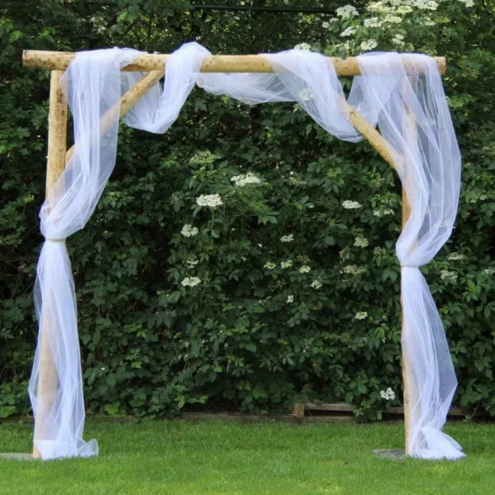 Romantischer Rustikaler Hochzeitslaube, Höhe 230cm, Breite 230cm. Mit weißem Tüll. Ohne Edelstahlsockel.
