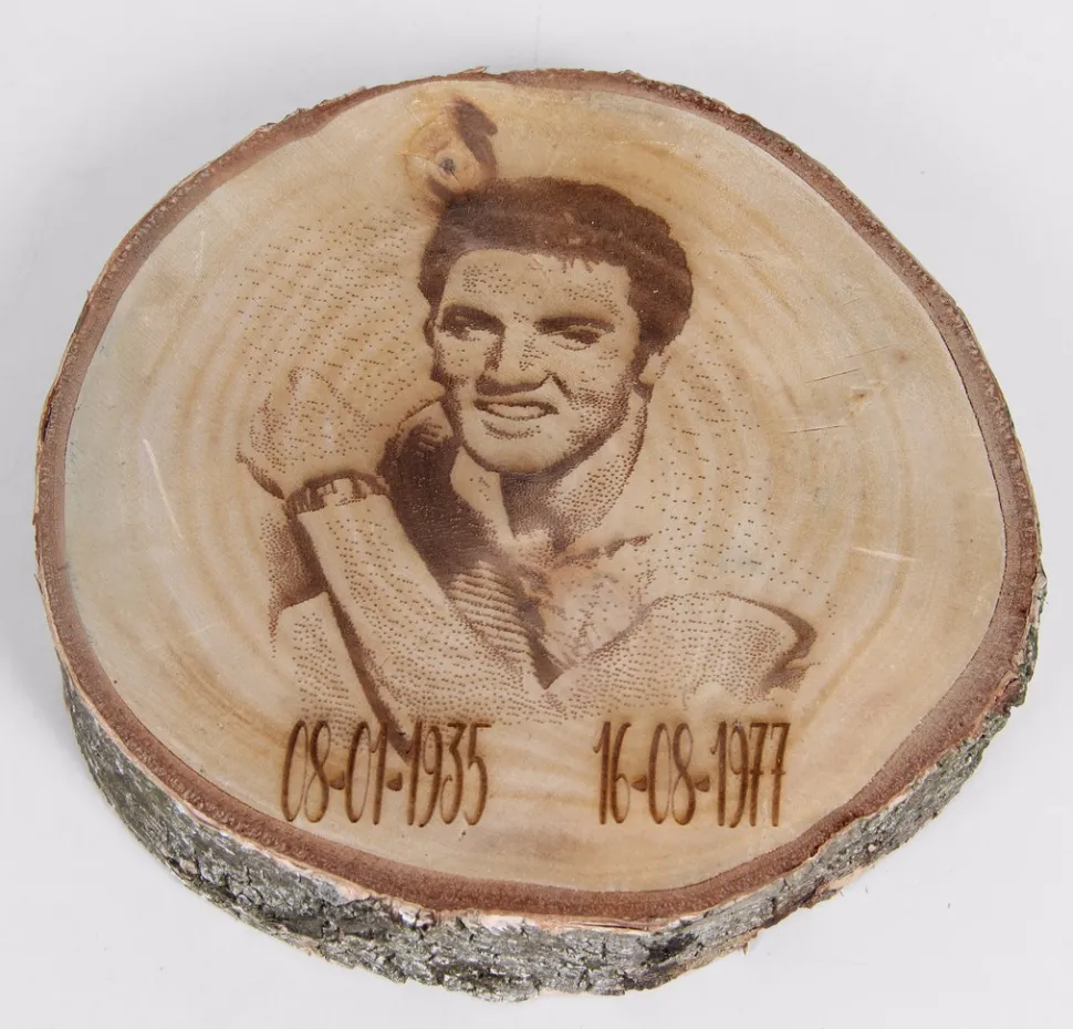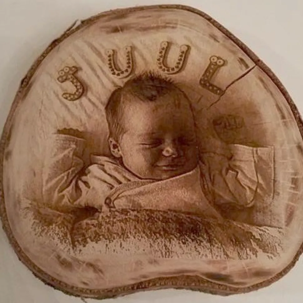 Holzscheibe mit eigenem Foto und/oder Text, Durchmesser ±20-25cm.