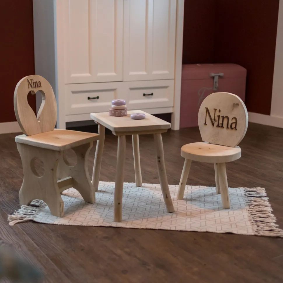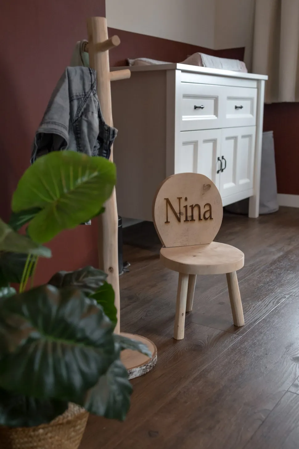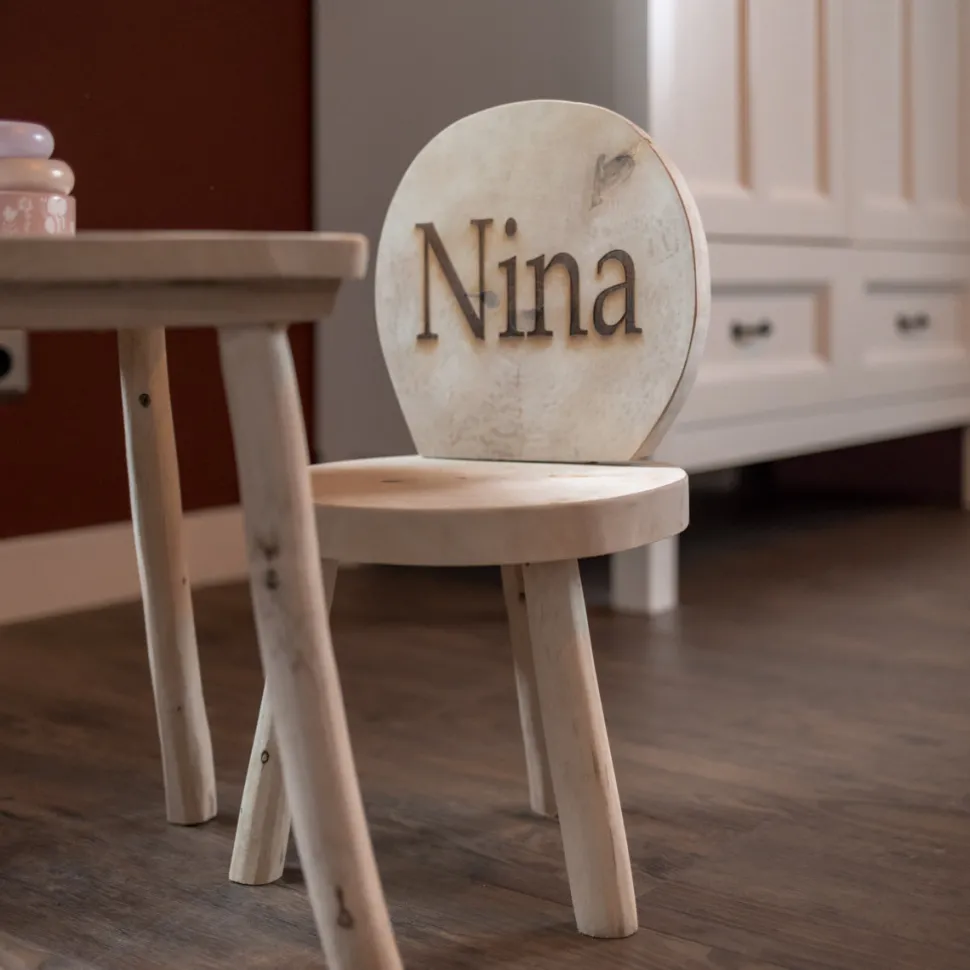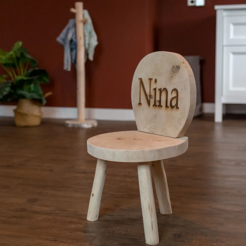 Dieser Hochstuhl aus Holz ist ideal für Ihr Kind. Mit einer stabilen Rückenlehne und vier stabilen Stuhlbeinen aus Baumstämmen wird Ihr Kind gerne darauf sitzen. Ideal für das Kinderzimmer oder das Wohnzimmer, damit Ihr Kind seinen eigenen Platz in Ihrer Nähe hat. Durch die helle Farbe unseres geschliffenen und sorgfältig bearbeiteten Holzes passt dieser Stuhl in jede Einrichtung. Der Stuhl wird ohne Gravur geliefert, aber möchten Sie ihm eine persönliche Note geben? Dann lassen Sie ihn von unserem Spezialisten gravieren. So erhalten Sie einen einzigartigen Stuhl oder Sie möchten ihn vielleicht verschenken.