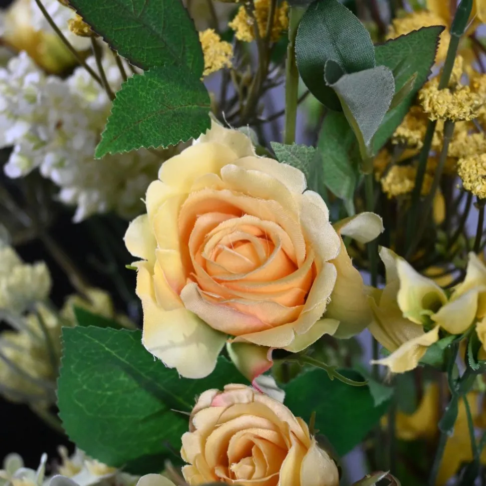 Farbenfroher Kunstblumenstrauß in schönen Gelbtönen.