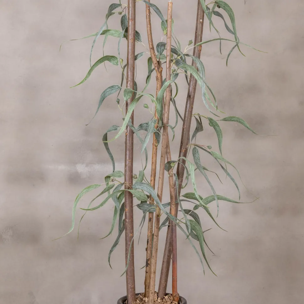 Natürliche Stämme mit künstlichem Trauerweidenblatt inklusive hübschem Steintopf. Höhe 160 cm.