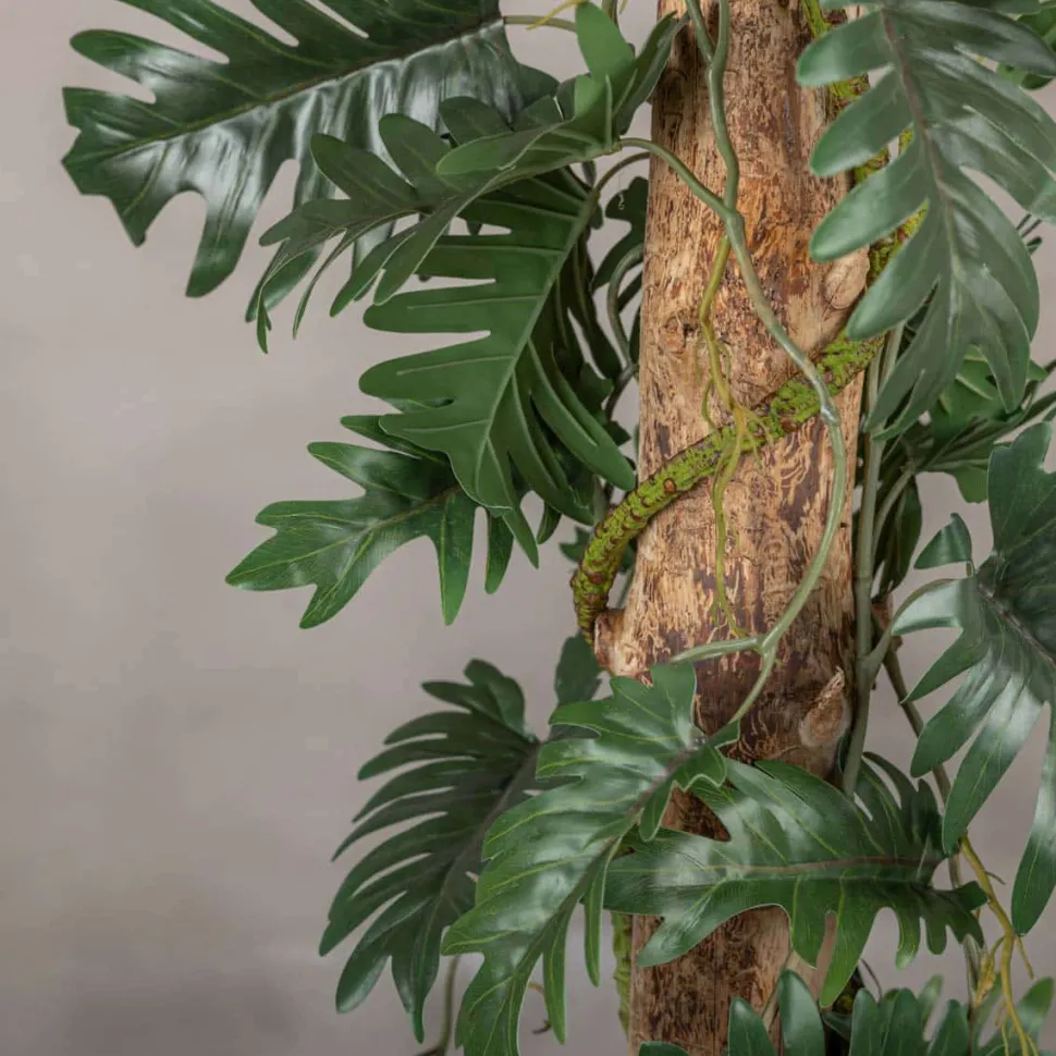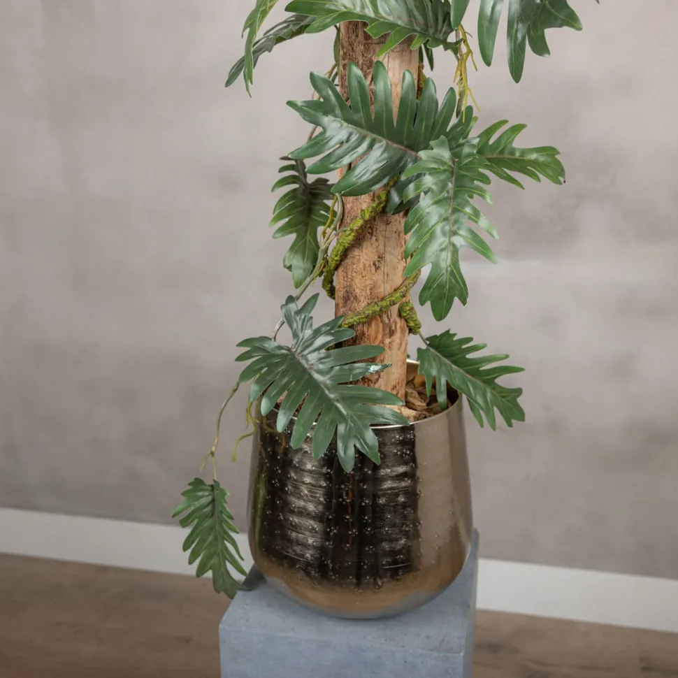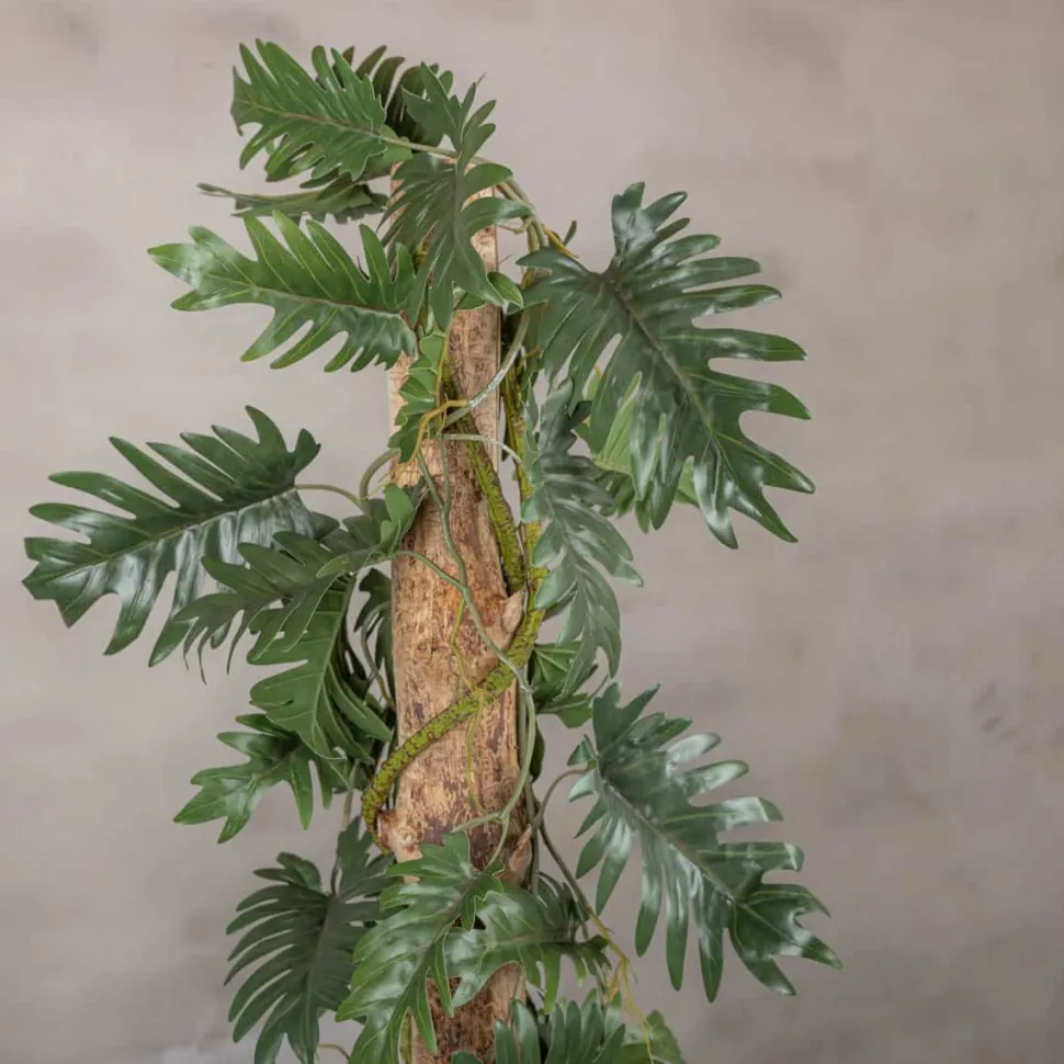 Natürlicher Stamm mit Kunst Philodendronblatt mit einem Innentopf von 15 x 19 cm.