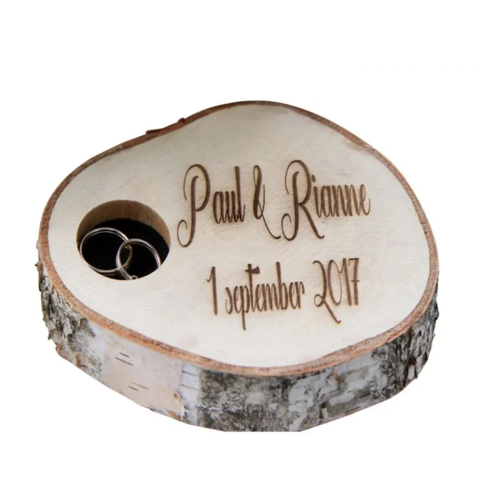 Ringtablett aus Baumscheibe, gelasert mit Text Ihrer Wahl.
