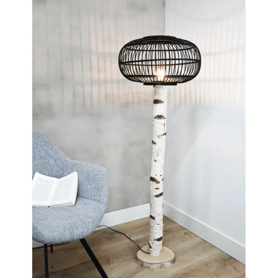 Stehlampe aus einem dekorativen Birkenstamm mit einem Fuß aus einer Birkenholzscheibe. Diese einzigartige, handgefertigte Lampe verleiht Ihrem Raum eine stimmungsvolle Ausstrahlung.