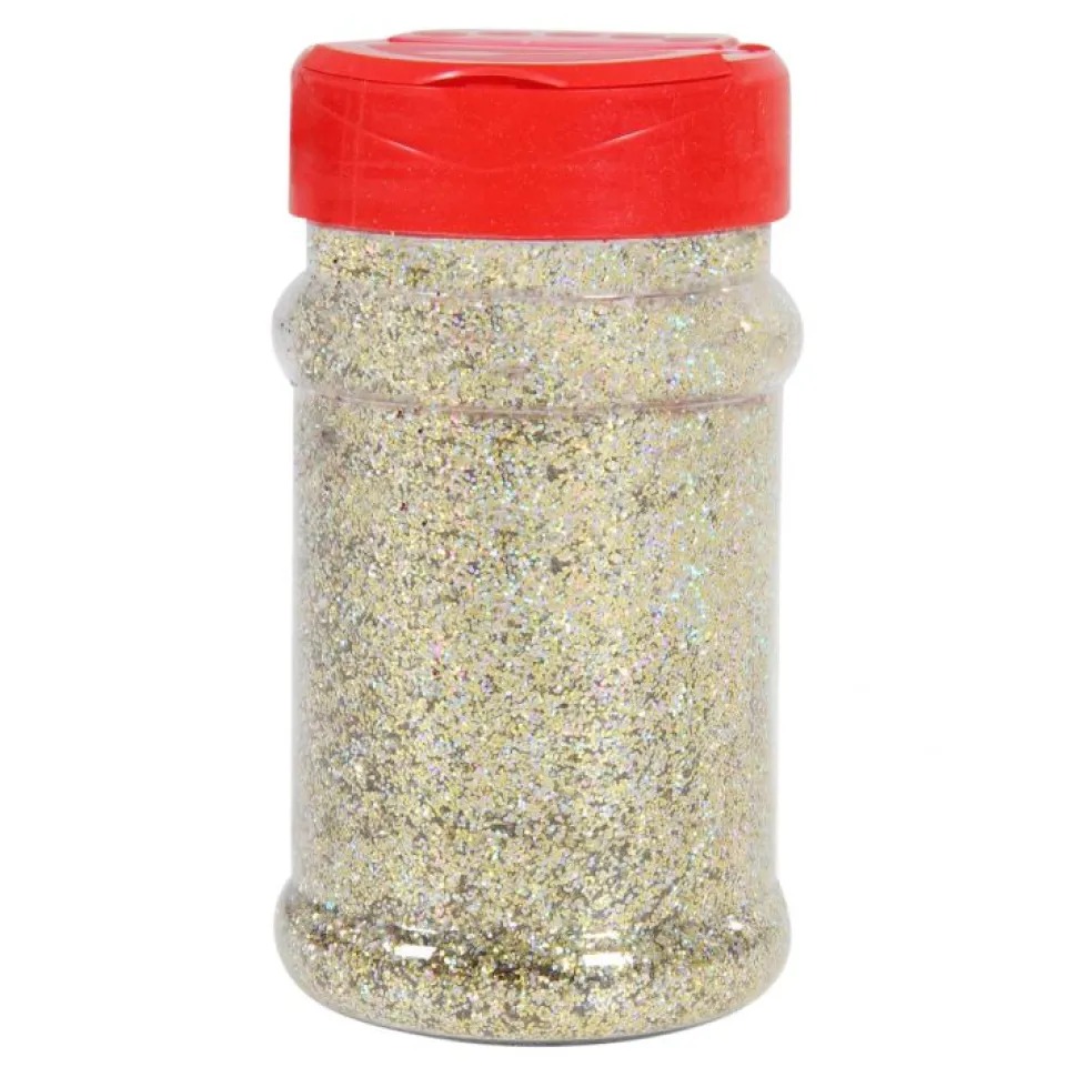 Streudose mit feinem Glitterpulver in Silber und Gold, Inhalt Streudose 220 ml. Glittergröße ± 0,06 mm
