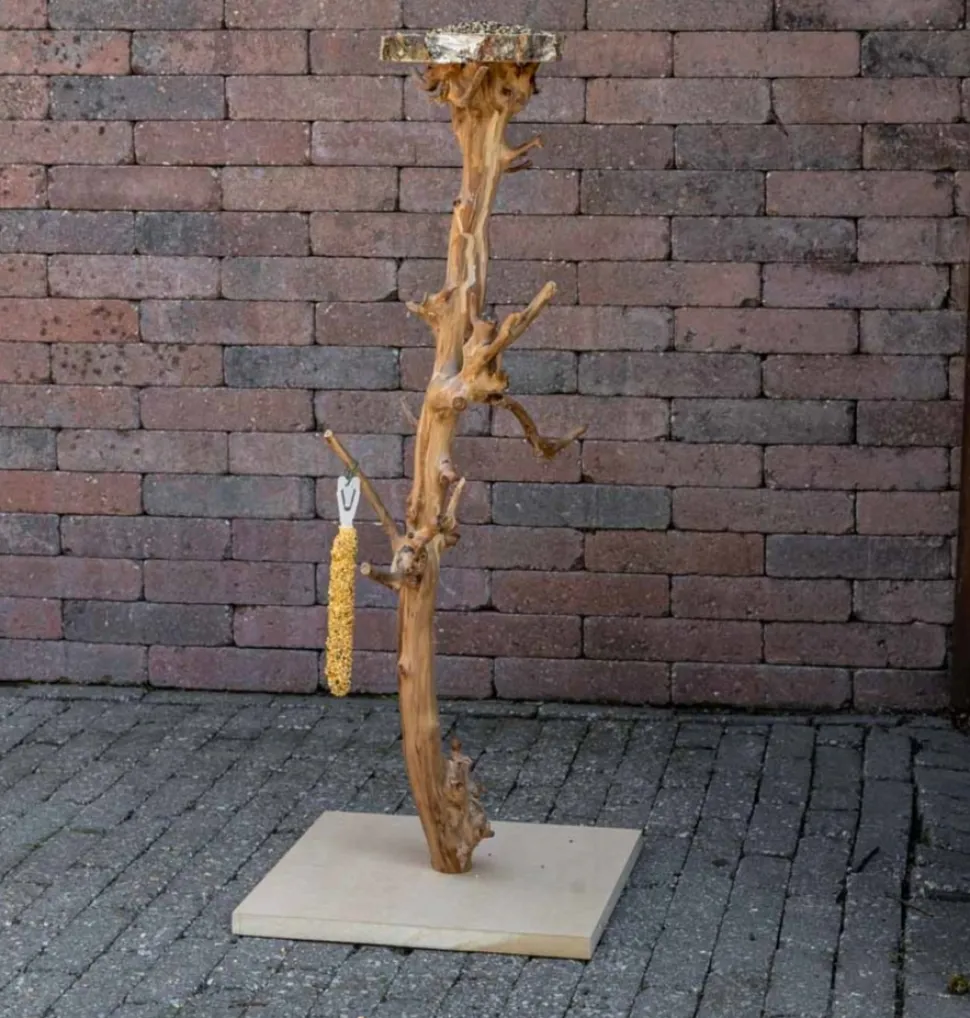 Der Vogelkletterbaum ist aus einem sandgestrahlten Birnenstamm gefertigt. Das Holz ist unbehandelt und daher ungefährlich für Ihre Vögel. Durch die Seitenäste, an denen man Spielzeug oder leckere Snacks aufhängen kann, hat der Birnenstamm eine verspielte Ausstrahlung. Stellen Sie ihn in Ihre Voliere oder Ihr Wohnzimmer und es wird sicherlich des Lieblingskletterplatz Ihres Vogels. Am oberen Ende des Stammes befindet sich eine Holzscheibe, auf die Sie Vogelfutter streuen können und auf der Ihr Vogel auch sitzen kann.