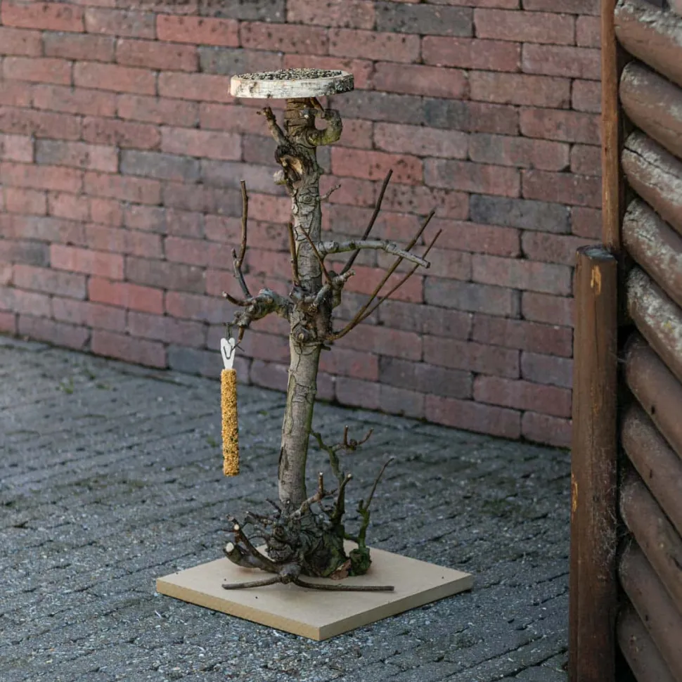 Der Vogelkletterbaum ist aus einem natürlichen Birnenstamm gefertigt. Das Holz ist unbehandelt und daher ungefährlich für Ihre Vögel. Durch die Seitenäste, an denen man Spielzeug oder leckere Snacks aufhängen kann, hat der Birnenstamm eine verspielte Ausstrahlung. Stellen Sie ihn in Ihre Voliere oder Ihr Wohnzimmer und es wird sicherlich des Lieblingskletterplatz Ihres Vogels. Am oberen Ende des Stammes befindet sich eine Holzscheibe, auf die Sie Vogelfutter streuen können und auf der Ihr Vogel auch sitzen kann.