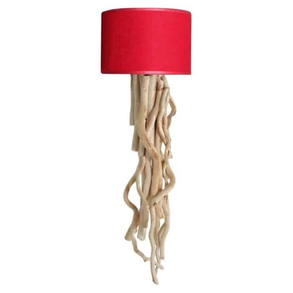 Wandleuchte aus entrindeten Ästen. Der Lampenschirm hat eine Größe von 22 x 15 cm. Die Gesamthöhe mit Lampenschirm beträgt 70 cm. Lieferung exklusive Glühbirnen.