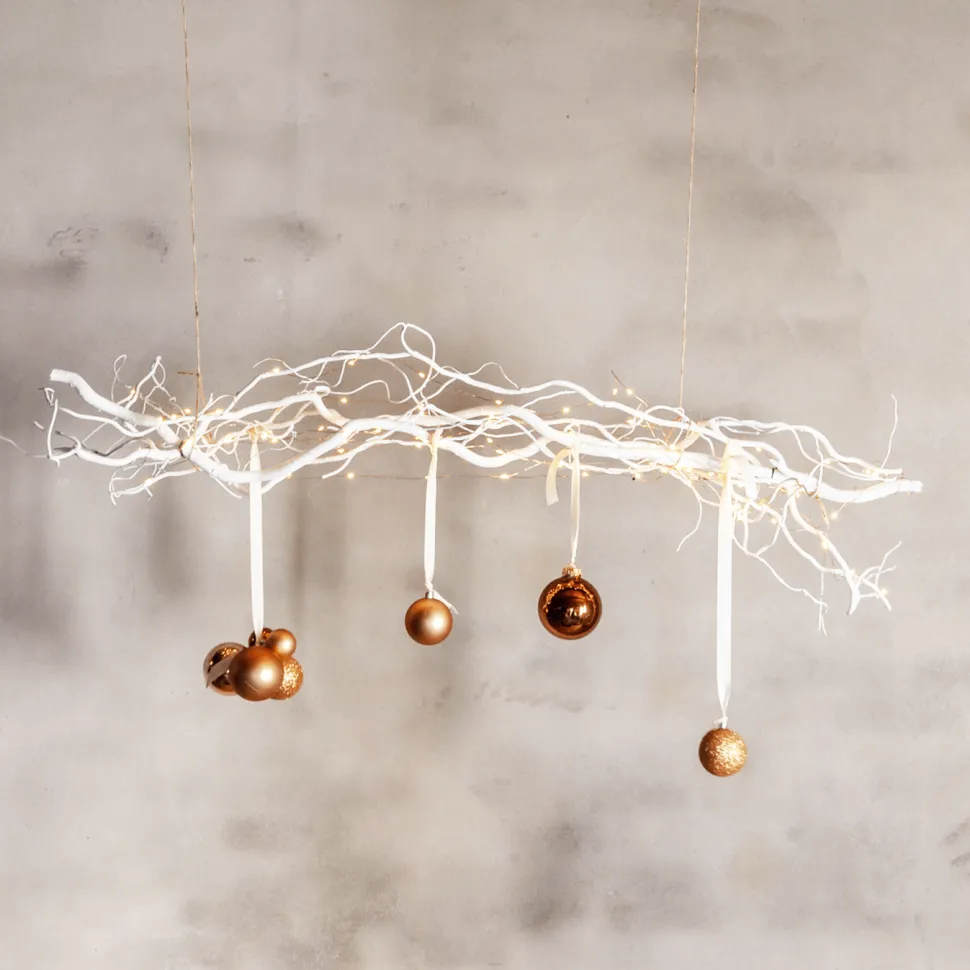 Schmücken Sie die weiß gefärbten Weidenzweige mit Ihrer eigenen festlichen Deko und kreieren Sie im Handumdrehen eine stimmungsvolle, originelle Weihnachtsgirlande. Mit einer Lichterkette, Kugeln, Sternen oder anderem Weihnachtsschmuck verziert, sehen die Weidenzweige einfach zauberhaft aus. Hängen Sie die Weihnachtsgirlande vor einem Fenster, an einer Wand oder über einem Tisch auf. Sie werden begeistert sein, wie gemütlich es gleich aussieht. Ein Weihnachtsbaum ist natürlich immer willkommen, doch auch mit dieser Weihnachtsgirlande bringen Sie schon jede Menge Weihnachtsstimmung in Ihr Zuhause!