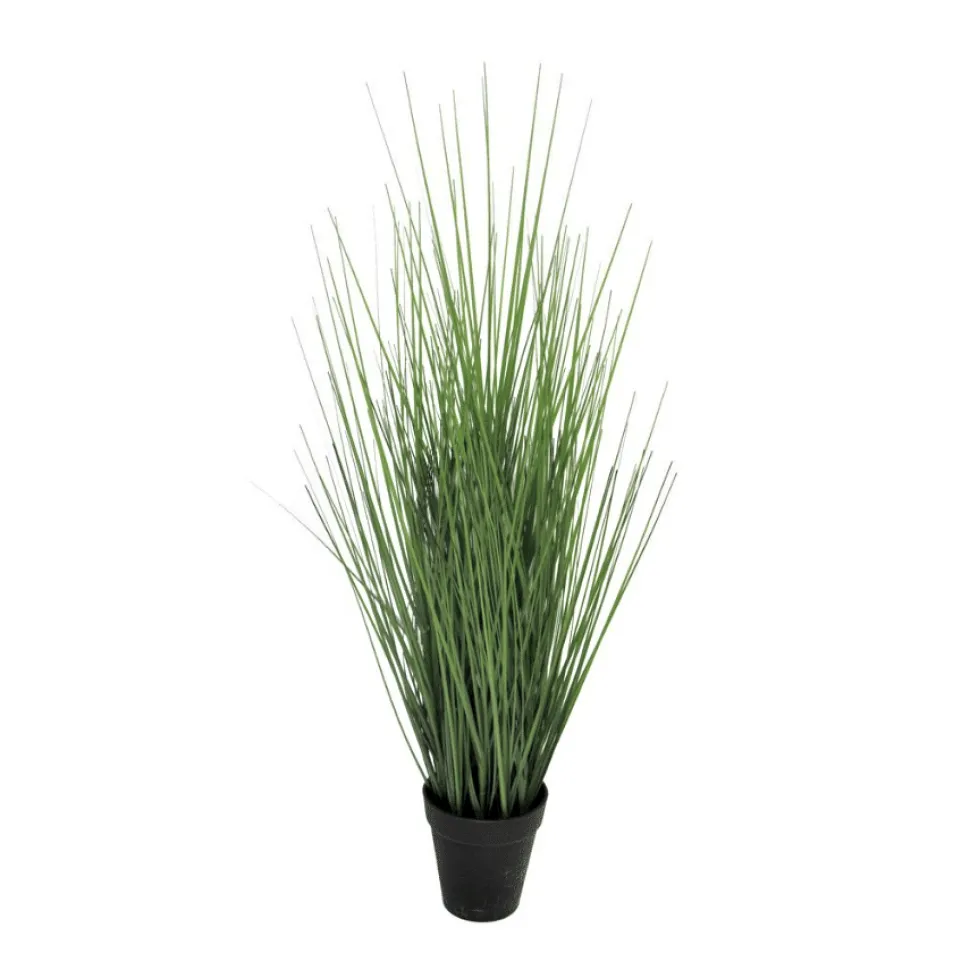 Künstlicher Zierrasen im schwarzen Topf. Höhe 60 cm, Durchmesser schwarzer Topf steigend 6 bis 9 cm.