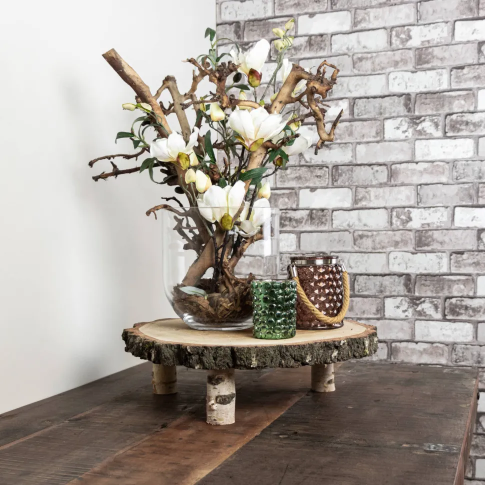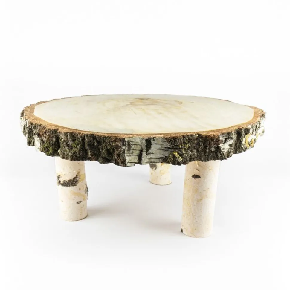 Baumscheibentisch aus Birke, für Snacks oder Deko-Artikel. Höhe 15 cm, Durchmesser ± 35-40 cm. Auch toll in Kombination mit unseren niedrigeren Baumscheibentischchen.