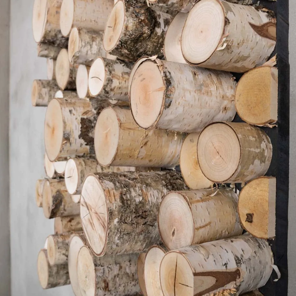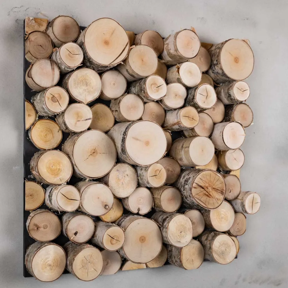 Wenn Sie ein natürliches Aussehen in Ihrer Wohnung oder Ihrem Geschäft wünschen, wählen Sie ein Wandpaneel mit Holzstämmen. Jedes Wandpaneel wird von uns handgefertigt und ist ein Unikat. Diese Wandpaneele sind auch in den Größen 80 x 80 cm und 100 x 100 cm erhältlich.