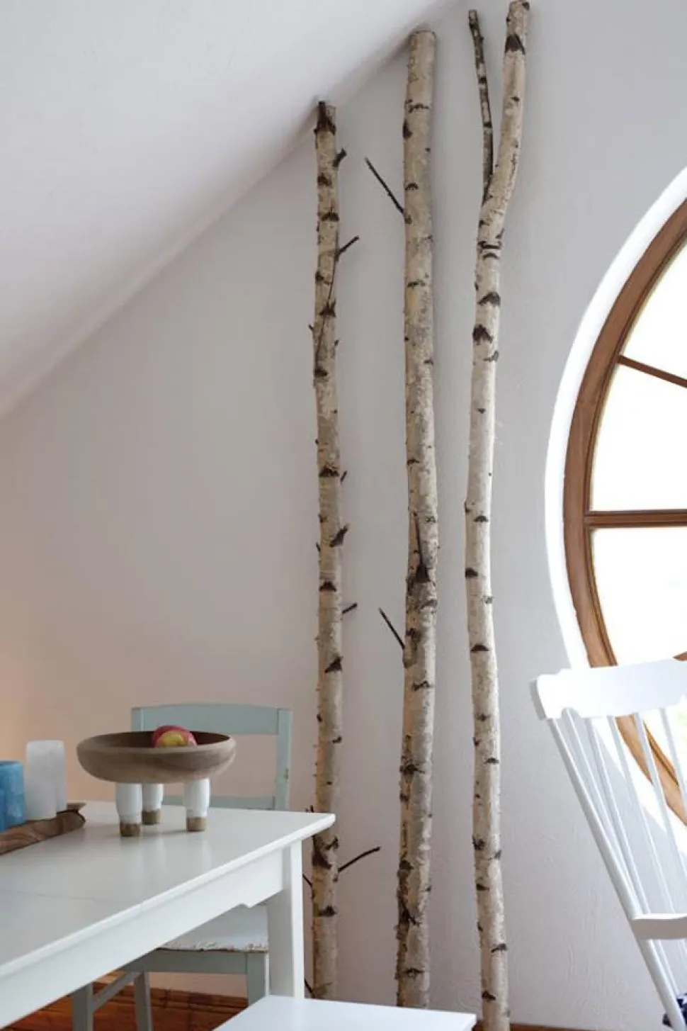 Dekorativer Birkenstamm, Länge 50 bis 150 cm, Durchmesser 6 bis 7 cm.