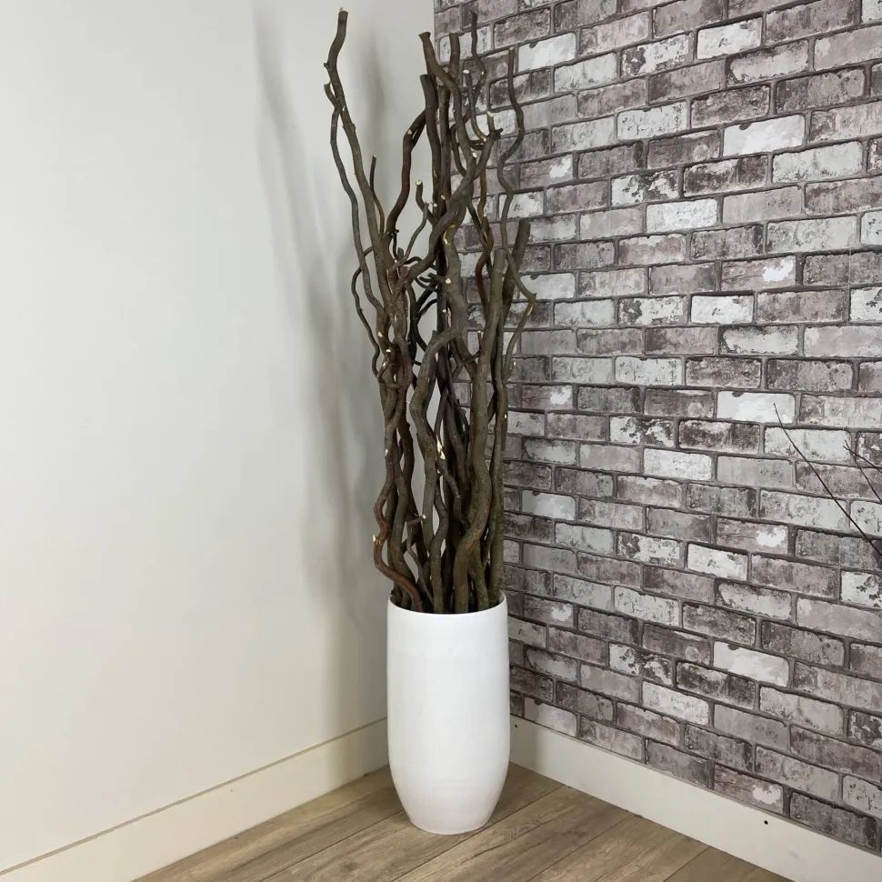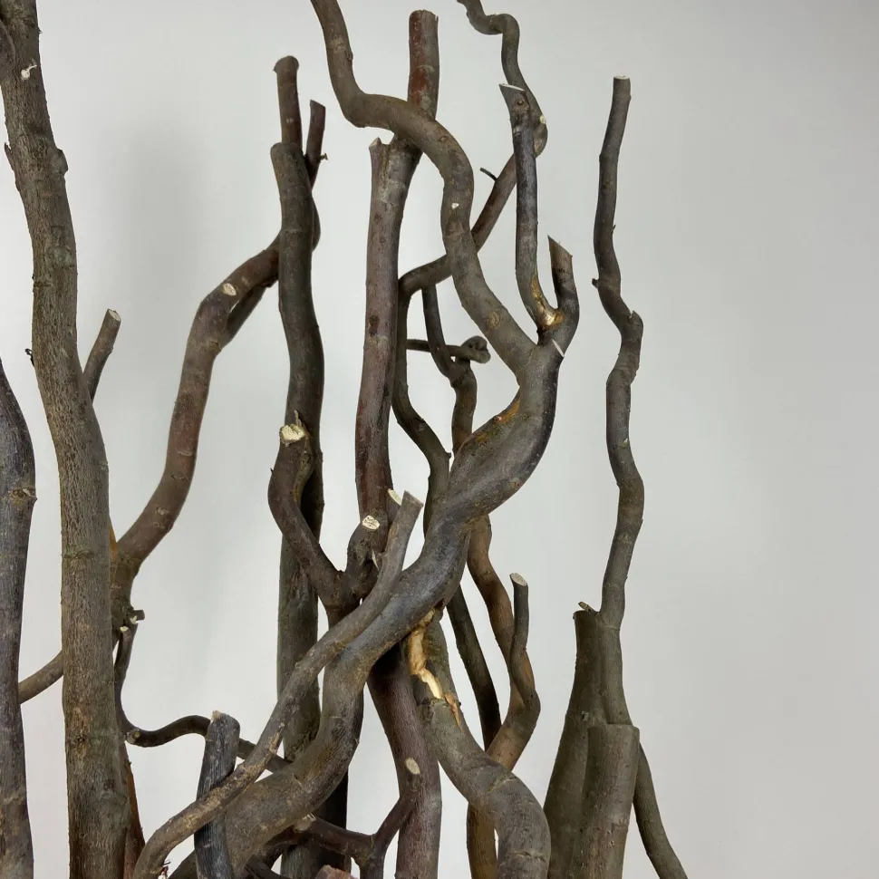 Sie erhalten mehrere kräftige Äste, die mit Nieten verbunden sind. Stellen Sie die Äste in ein Gefäß Ihrer Wahl und stabilisieren Sie sie mit Sand, Steinen, Baumrinde oder PU-Schaum. Sie können diese Äste auch bestellen.
