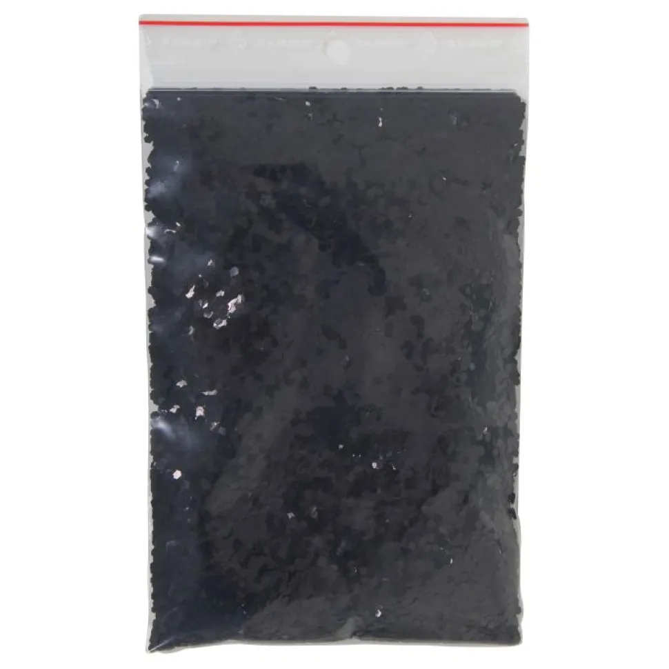Grober, schwarzer Glitter, 200 ml Beutelinhalt. Glittergröße ± 3 mm.