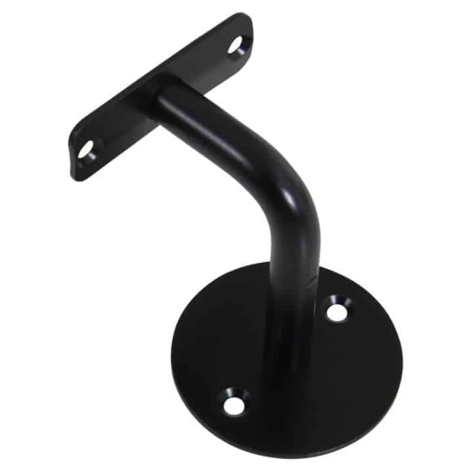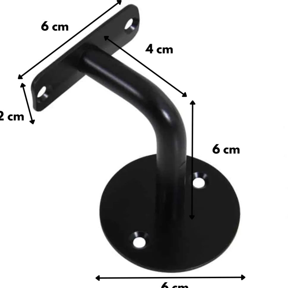 Schwarze Halterung mit Schraublöchern einschließlich Befestigungsmaterial.