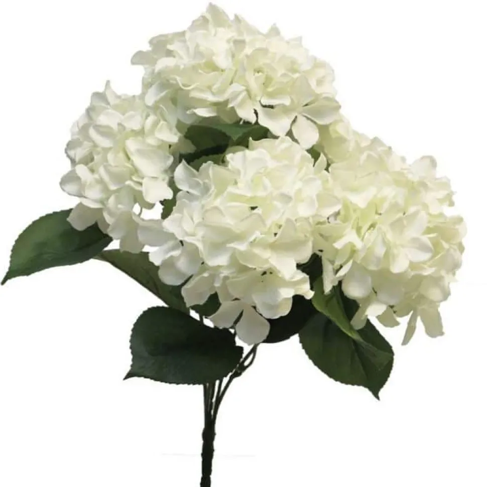 Bund mit zahlreichen künstlichen Hortensienblüten in der Farbe Weiß.
