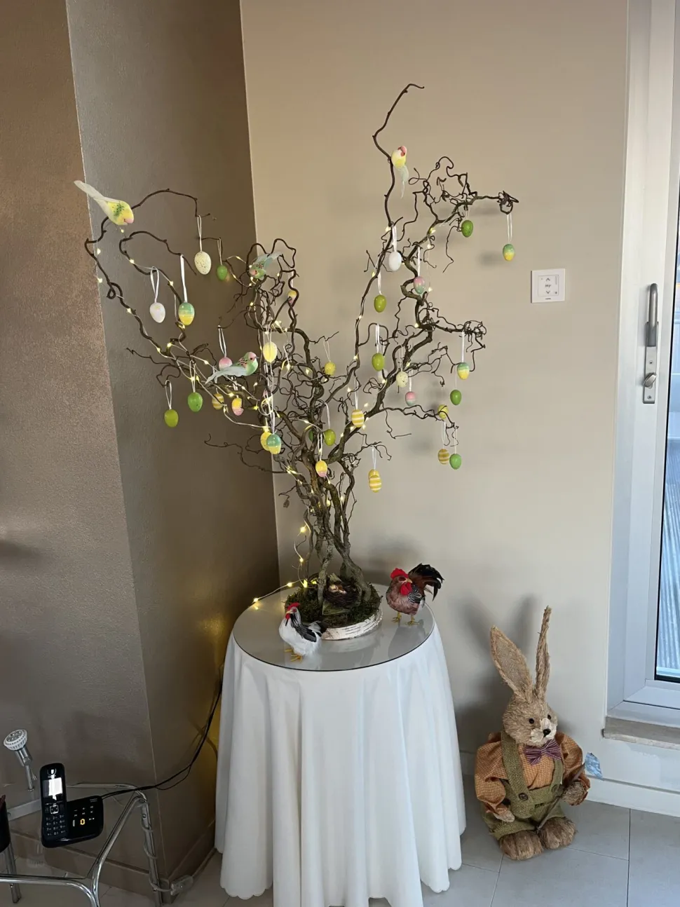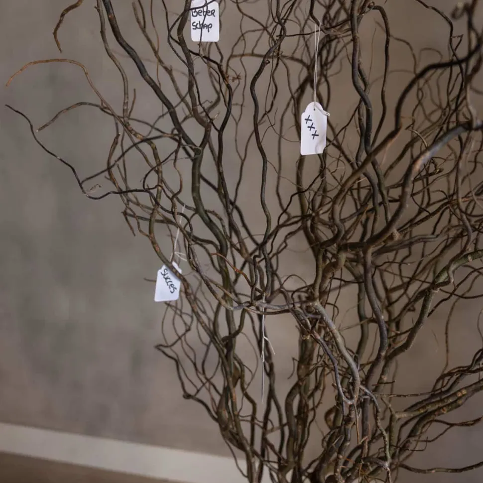Luxuriöser Wunschbaum auf einer Holzscheibe mit natürlichen Weidenzweigen. Höhe 150 cm. Exkl. Grußkarten.