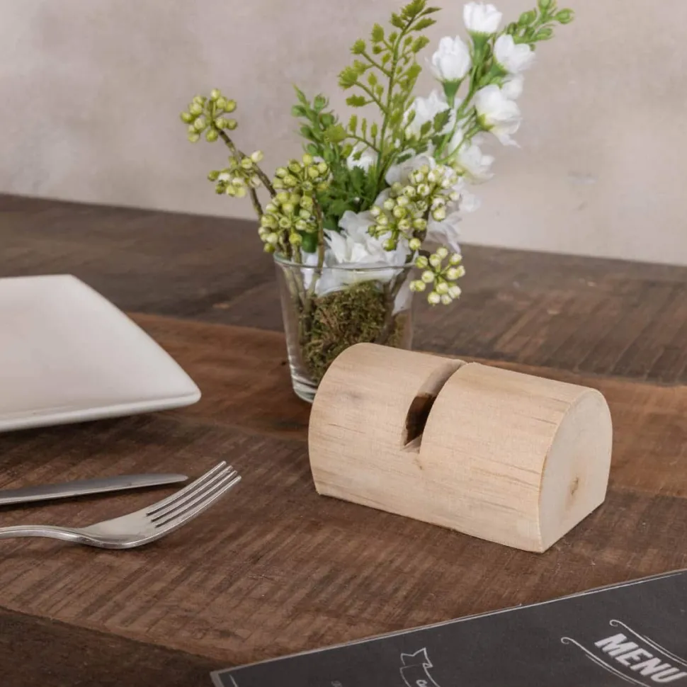 Menükartenhalter aus Holz. Breite 10 cm.