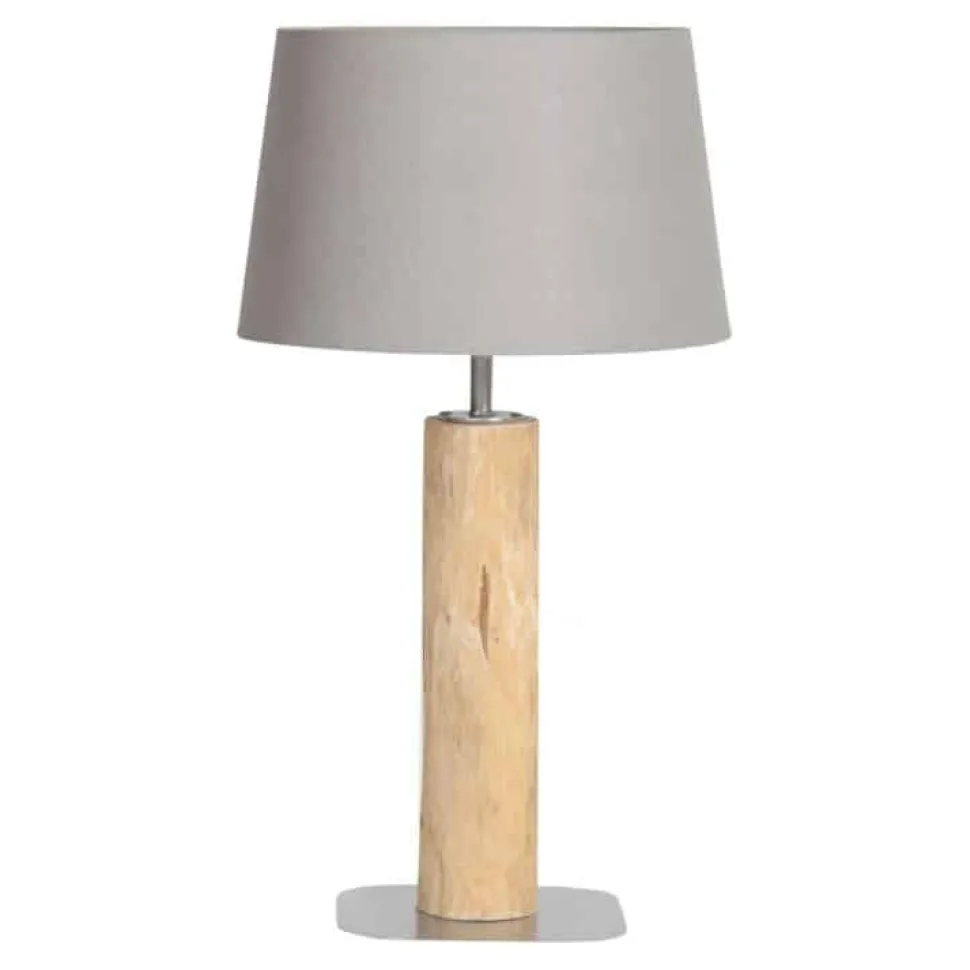 Tischleuchte aus entrindetem Stamm mit Flachsstoff-Lampenschirm. Höhe 65 cm