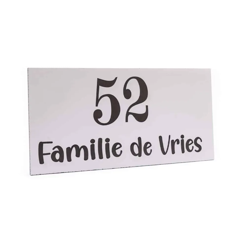 Trespa-Namensschild mit individuellem Text und/oder Symbol. Wetterfest, also ideal, wenn Sie etwas suchen, das auch im Freien verwendet werden kann. Länge 30cm, breite 15cm.