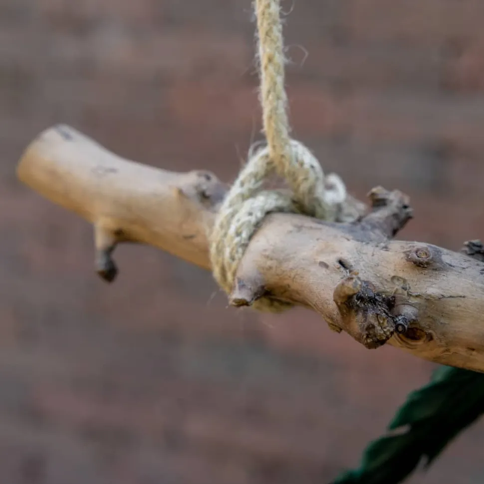 Vogelschaukel aus einem sandgestrahlten Birnenzweig mit zwei Juteseilen zum Aufhängen. Ihr Vogel wird hierauf gerne schaukeln, spielen und sitzen! Breite 120 cm.